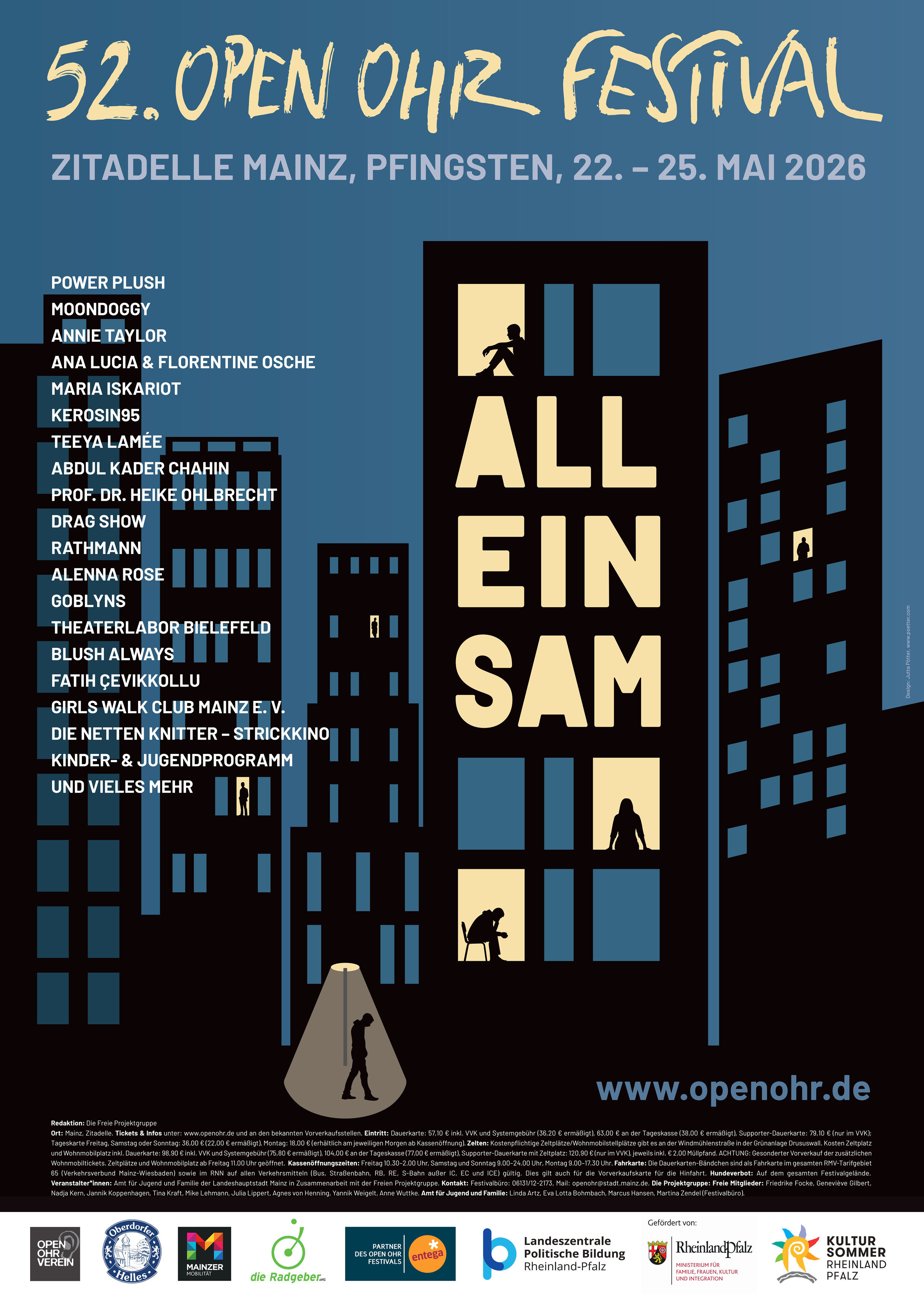 Lasst uns gemeinsam dieses Tabuthema überwinden und zusammenkommen, um über das zu sprechen, was viel zu viele von uns allein mit sich herumtragen. Gemeinsam wollen wir auf der Zitadelle über Ursachen und Folgen von Einsamkeit sprechen. Und darüber, was wir dagegen tun können. Verschiedenste Kunstformen auf der Zitadelle werden euch außerdem zeigen: Es gibt unzählige Wege, sich mit Einsamkeit auseinanderzusetzen – und wie wichtig das ist!