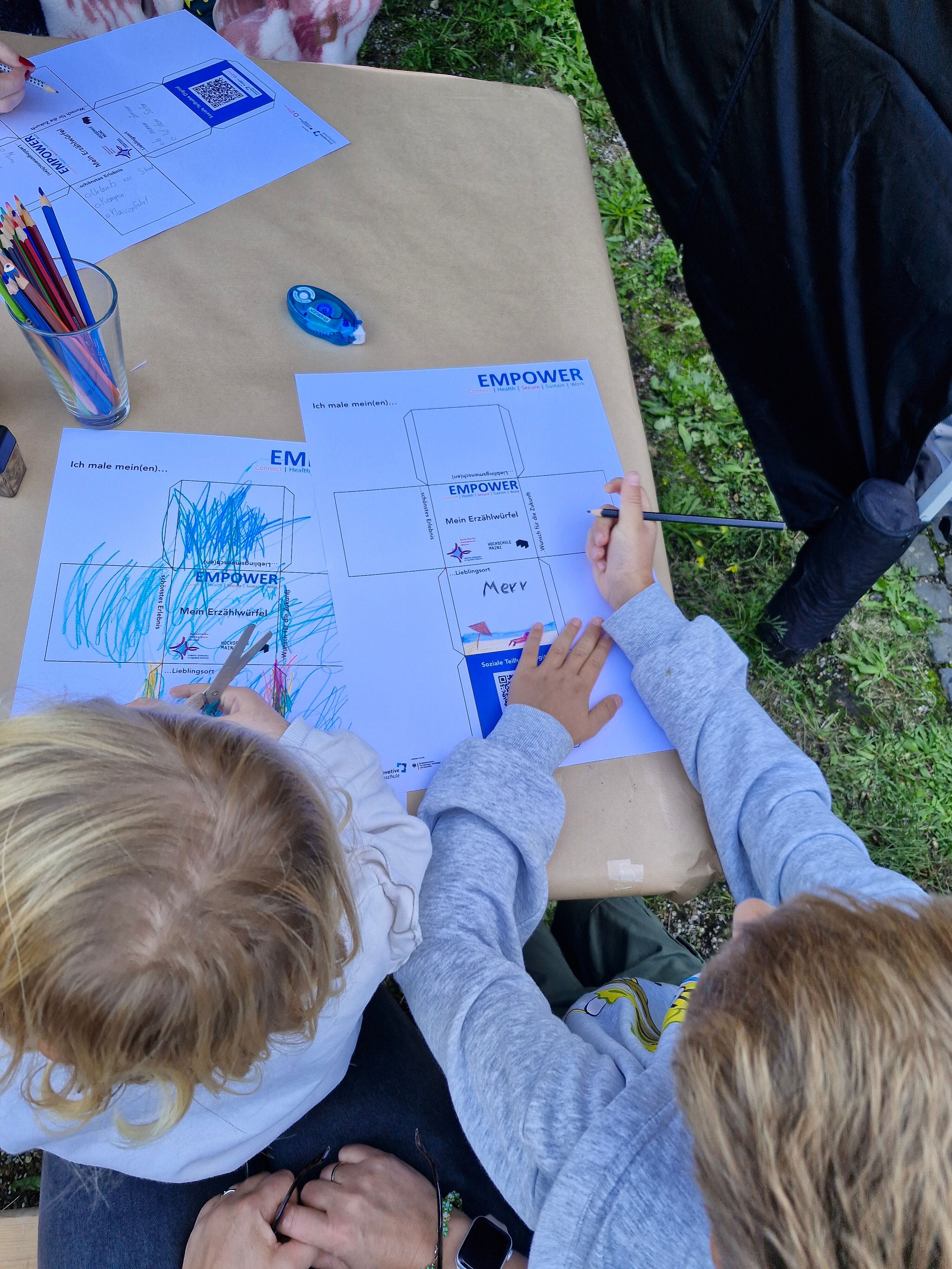 Am EMPOWER-Stand selbst drehte sich alles um die Bedeutung des biographischen Erzählens für Erinnerung und Wohlbefinden von älteren Menschen. Kinder konnten einen Erzählwürfel basteln und mit ganz persönlichen Informationen zu den jeweiligen Lieblingsorten, wichtigen Menschen, schönen Erlebnissen und Zukunftswünschen versehen. Mit jedem Würfel ergaben sich neue Anlässe für Gespräche – sowohl vor Ort als auch später zuhause mit Eltern oder Großeltern. Älteren Kindern und Erwachsenen stellte das Team der KH Mainz einen digitalen Demonstrator auf dem iPad vor, der aktuell auch in Senioreneinrichtungen getestet wird. Er dient als innovatives Erinnerungsalbum, das biographische Ereignisse mit Orten verknüpft, um darüber ins Gespräch zu kommen. Das Projektteam erhielt zahlreiche positive Rückmeldungen, sowohl von den Kindern als auch von ihren Familien sowie von Personen aus dem Bildungssektor, mit denen viele spannende Gespräche zustande kamen.