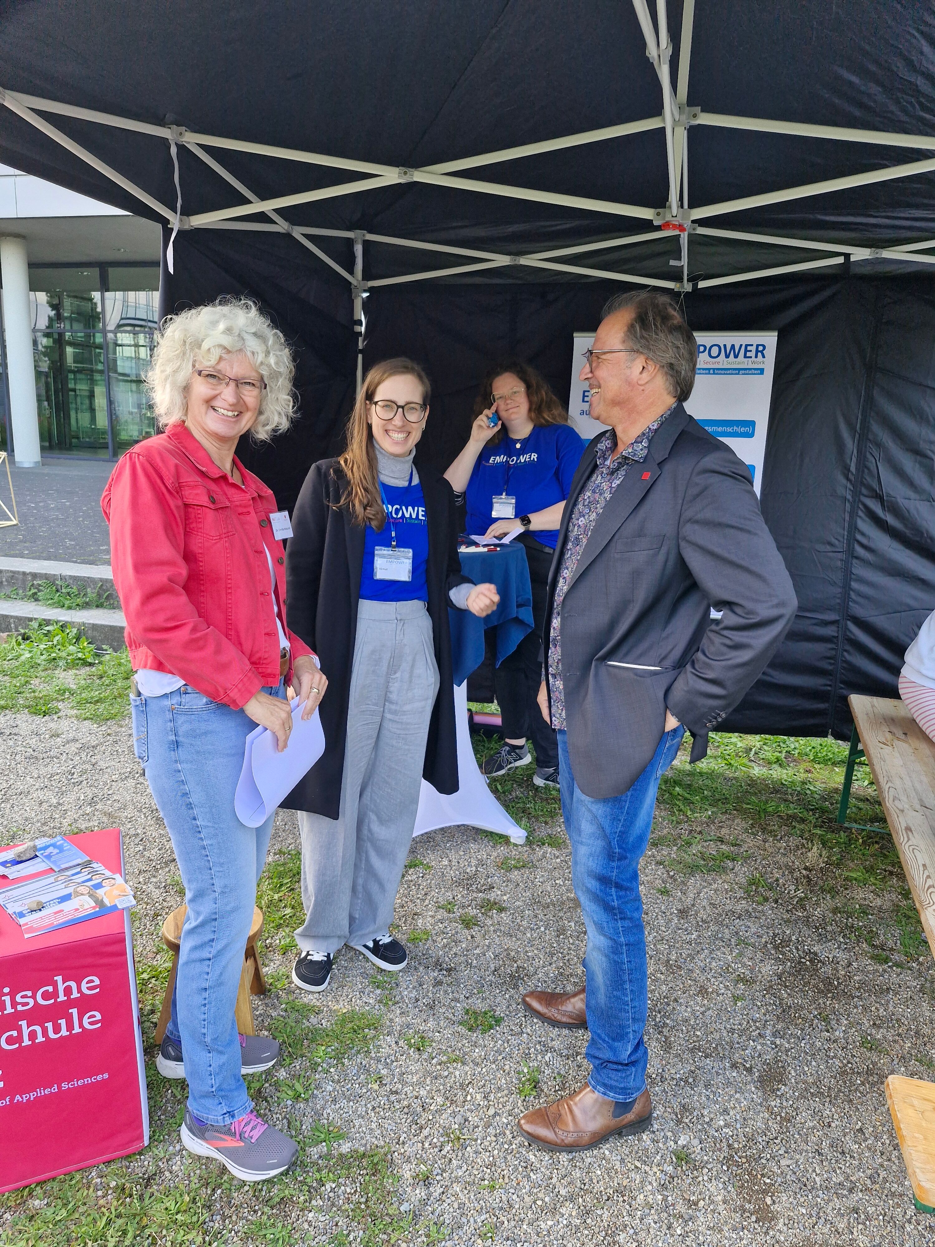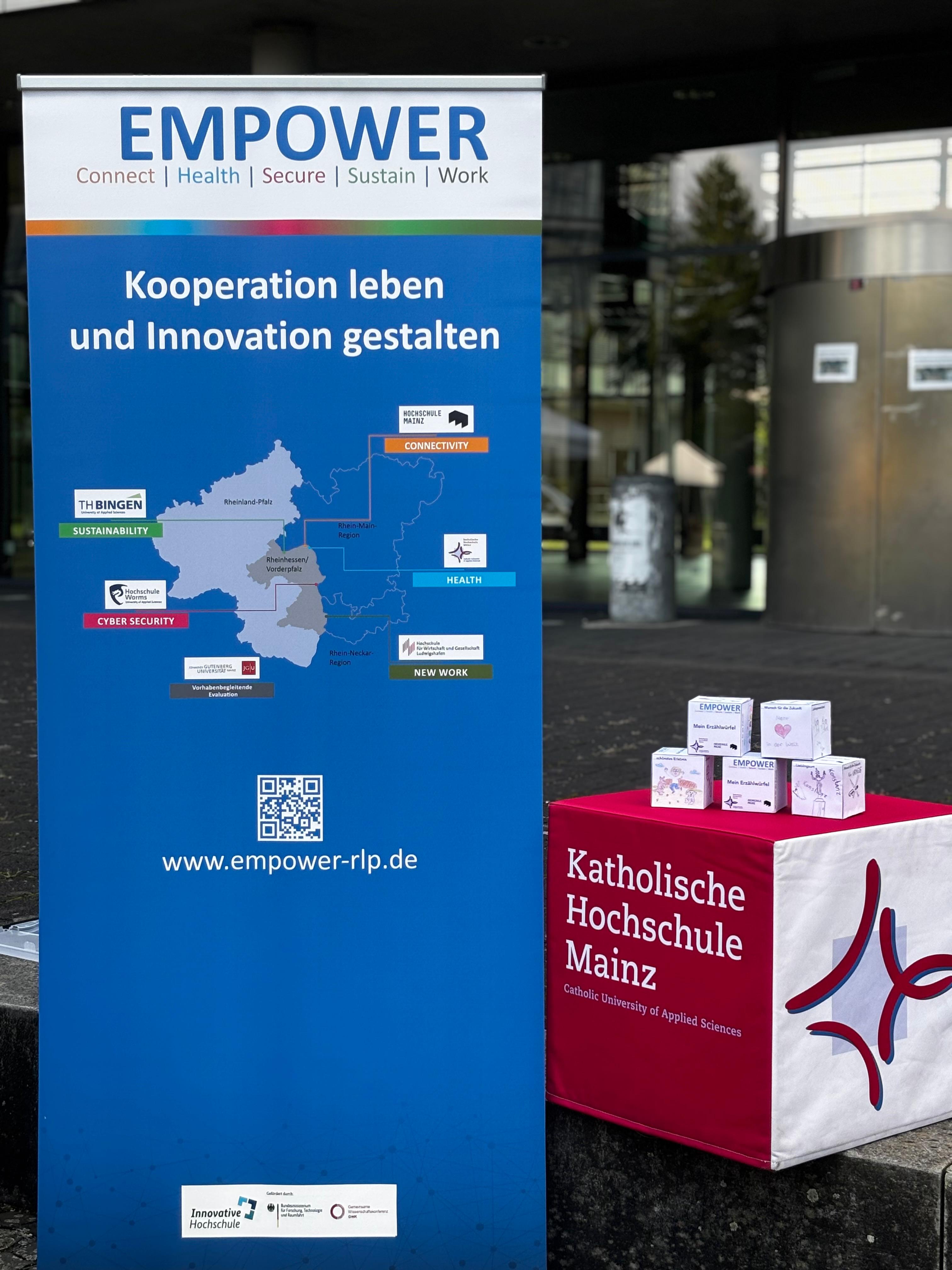Das EMPOWER-Verbundprojekt war über die Katholische Hochschule Mainz mit dem Projekt „Soziale Teilhabe digital“ vertreten. Das Team – Almut Plath, Sophia Timmermann und Hannah Schilling– freute sich, auf ein buntes, generationenübergreifendes Publikum zu treffen.